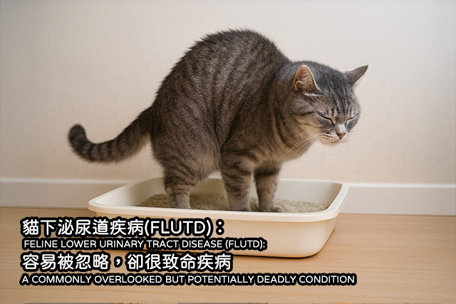 貓下泌尿道疾病(FLUTD)是影響「膀胱與尿道」的綜合性疾病,包括自發性膀胱炎(FIC)、尿結晶、尿道炎、膀胱結石、細菌感染(UTI),以及最危險的尿道阻塞(UO)。症狀彼此相似:頻尿、血尿、久蹲尿不出、過度舔舐、亂尿與疼痛行為。真正的關鍵是判斷「能不能順利排尿」,因為只要尿不出,就是急症。