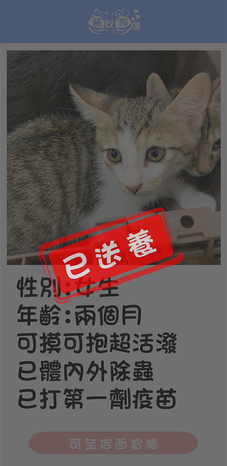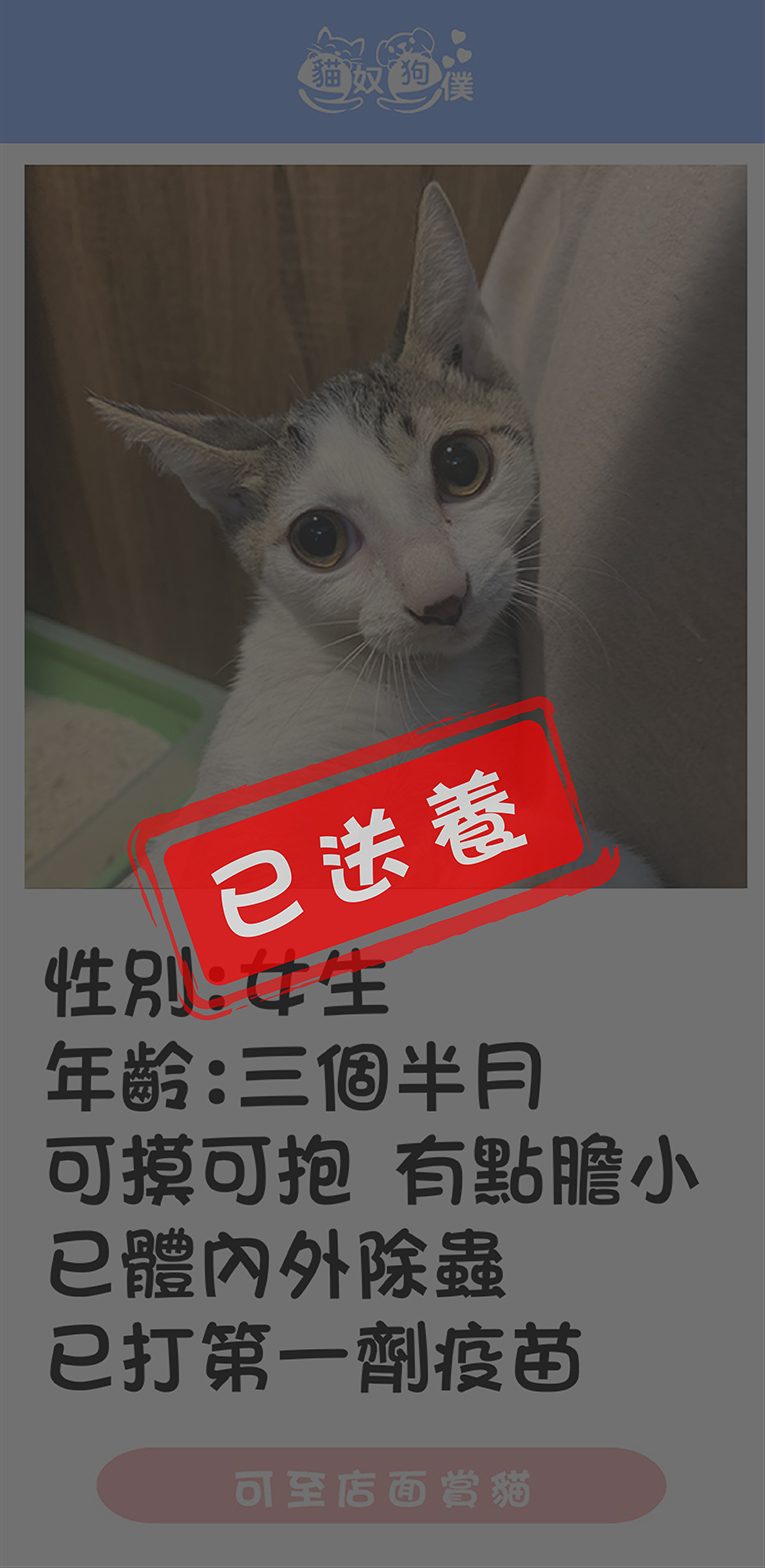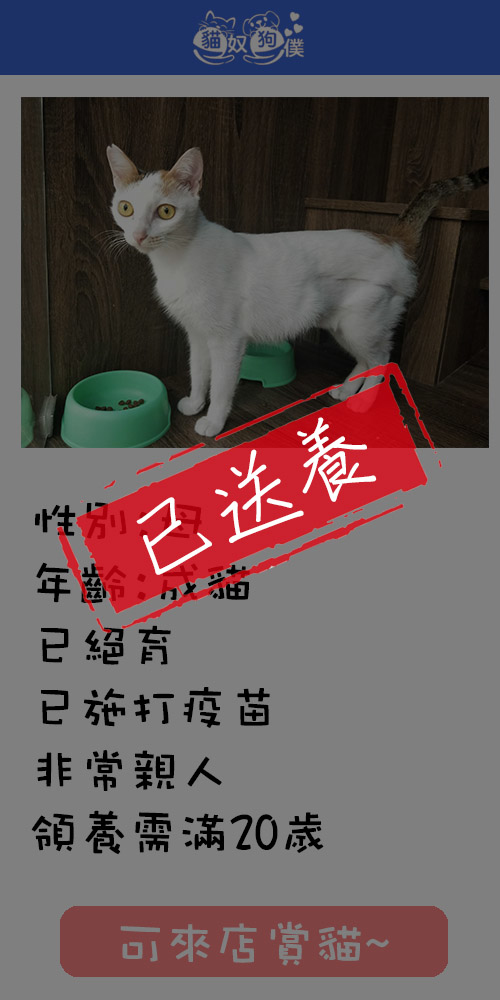 在貓奴領養不用費用 只需注意領養事項🔽 🎈領養後帶去看醫生 🎈定期施打疫苗、體內外除蟲 🎈登記寵物晶片 🎈終養不棄養 🎈愛她三千年♥