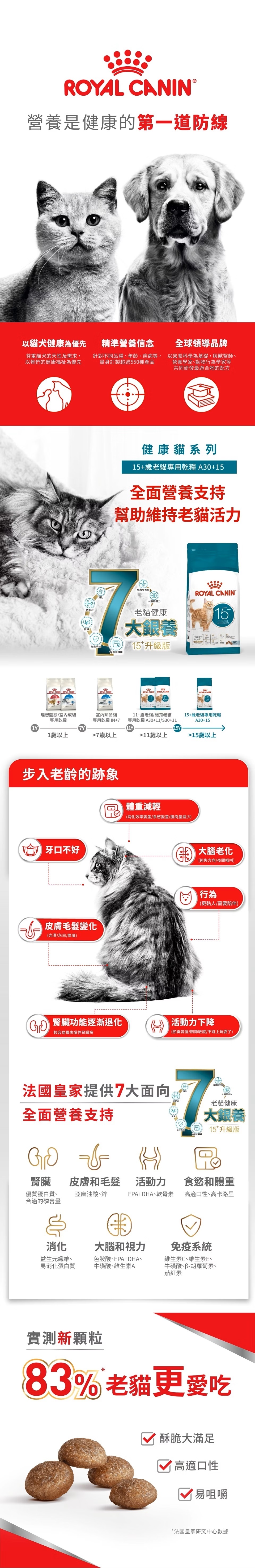 HealthyAge7™ Complex精準營養配方,從7個方面支持15歲以上的貓保持最佳健康狀況和活動力