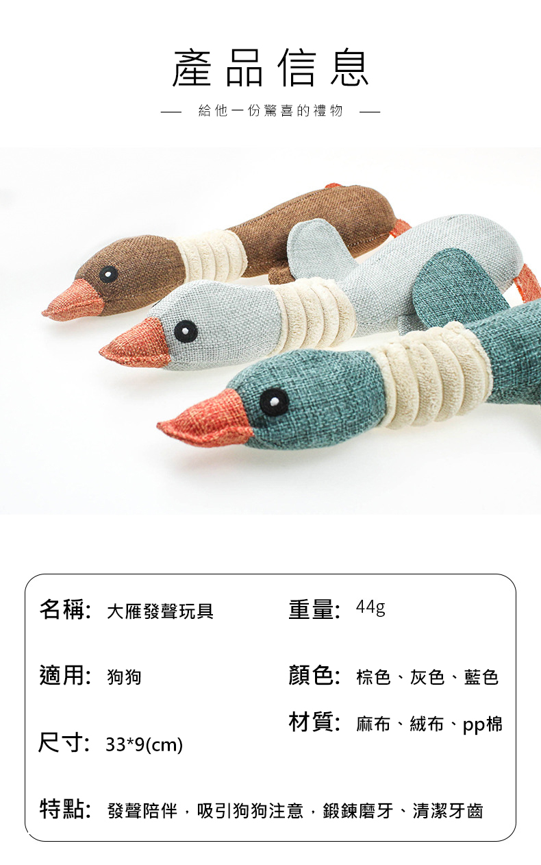 材質:外層麻布+內層填充物棉花+發聲氣囊