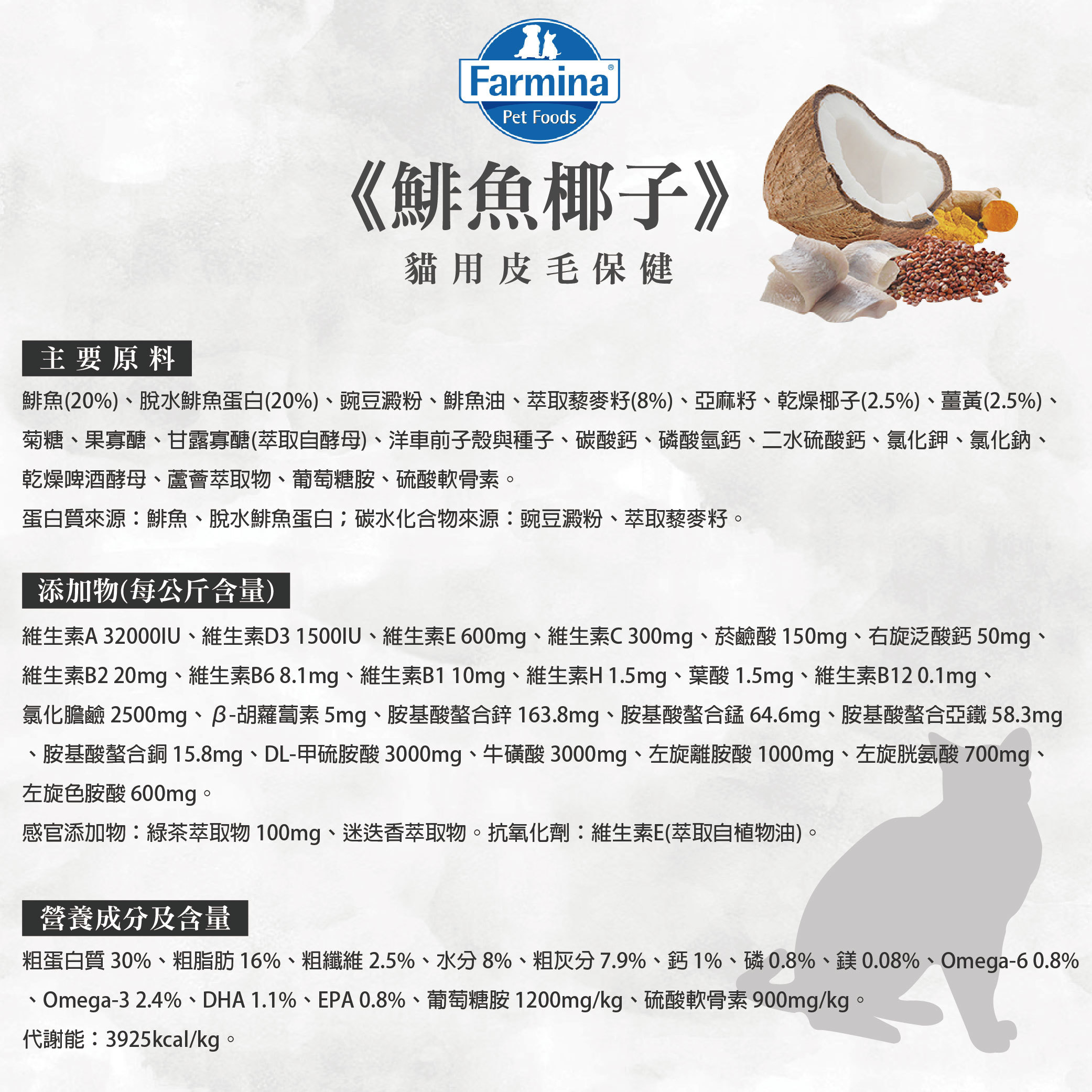 【法米納】天然藜麥無穀機能系列-貓用皮毛保健-QC2鯡魚椰子