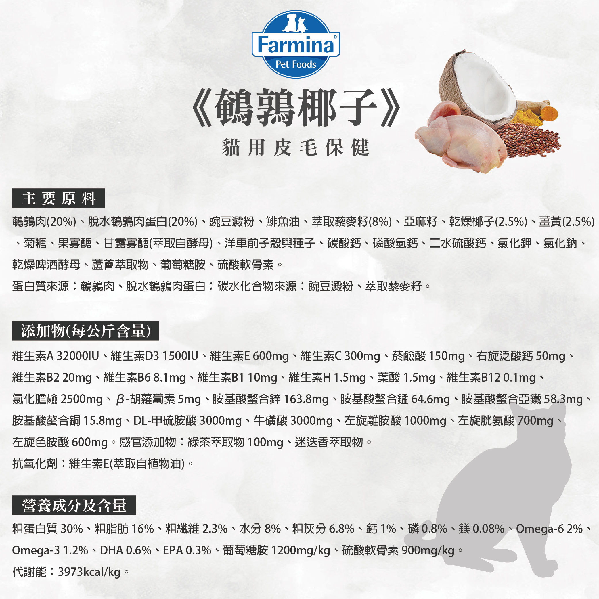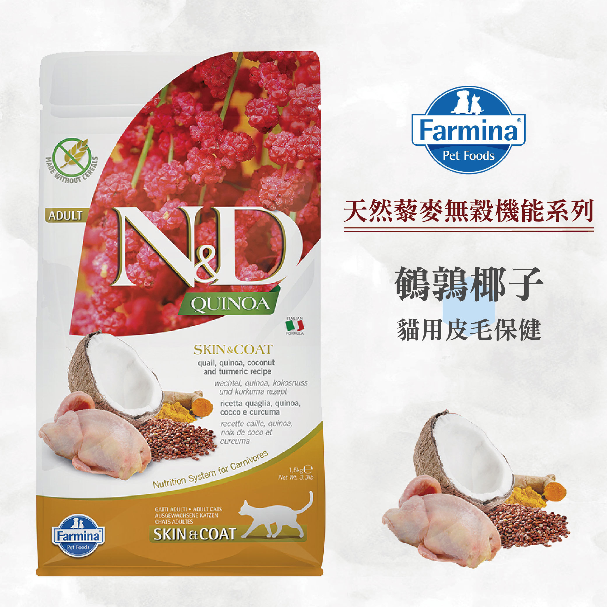 【法米納】天然藜麥無穀機能系列-貓用皮毛保健-QC3鵪鶉椰子