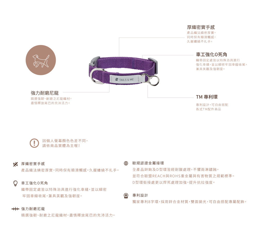 尾巴與我 經典尼龍帶/基本款/項圈-共11色-XS/S/M/L