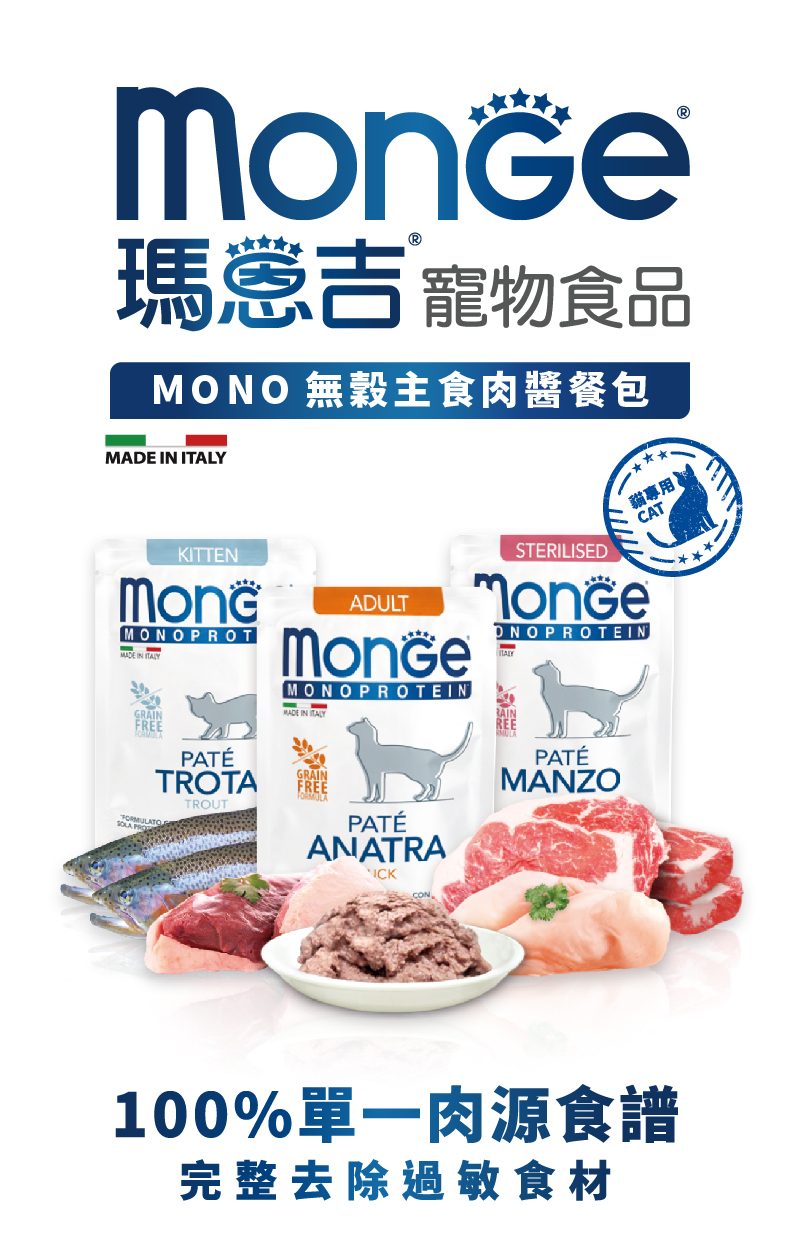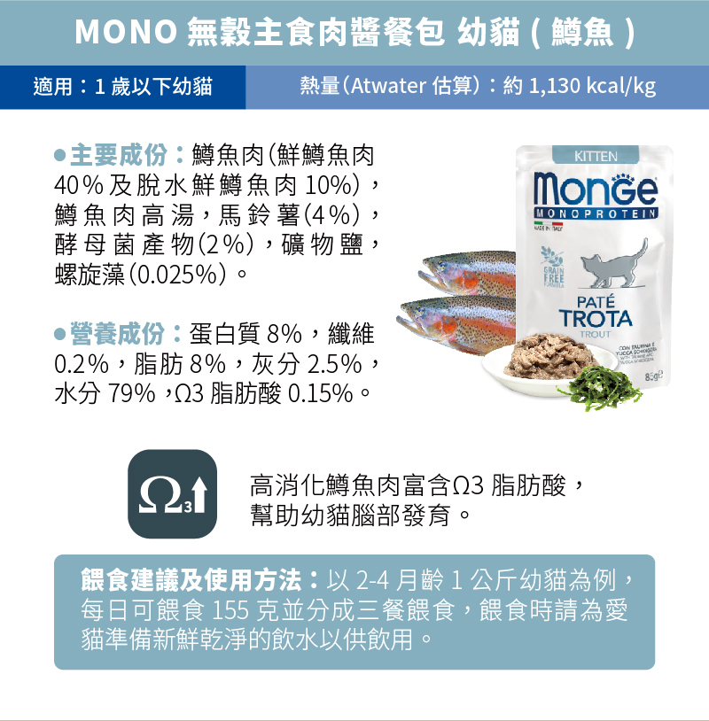 瑪恩吉Monge-MONO無榖主食肉醬餐包-幼貓(鱒魚)-85g